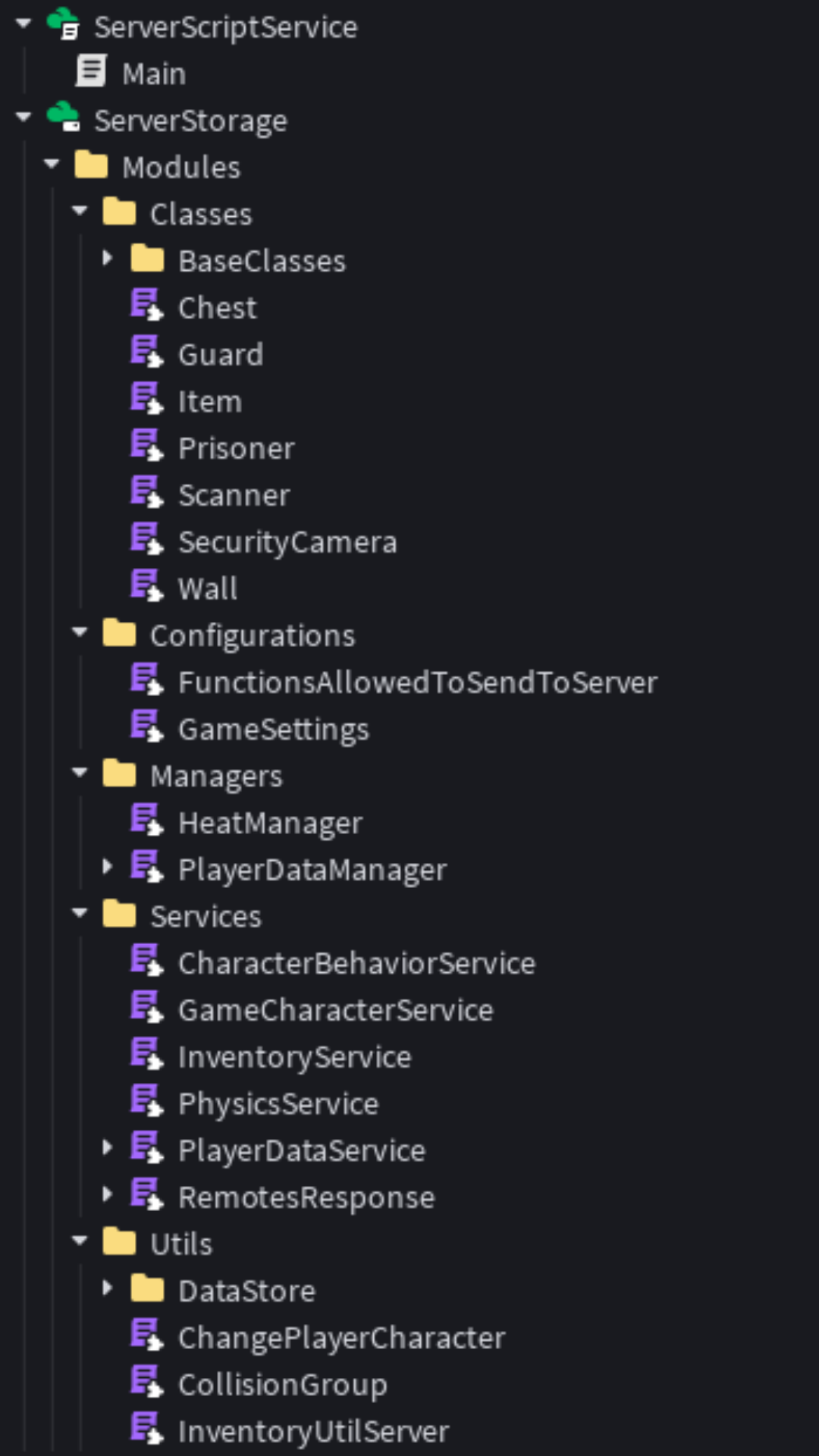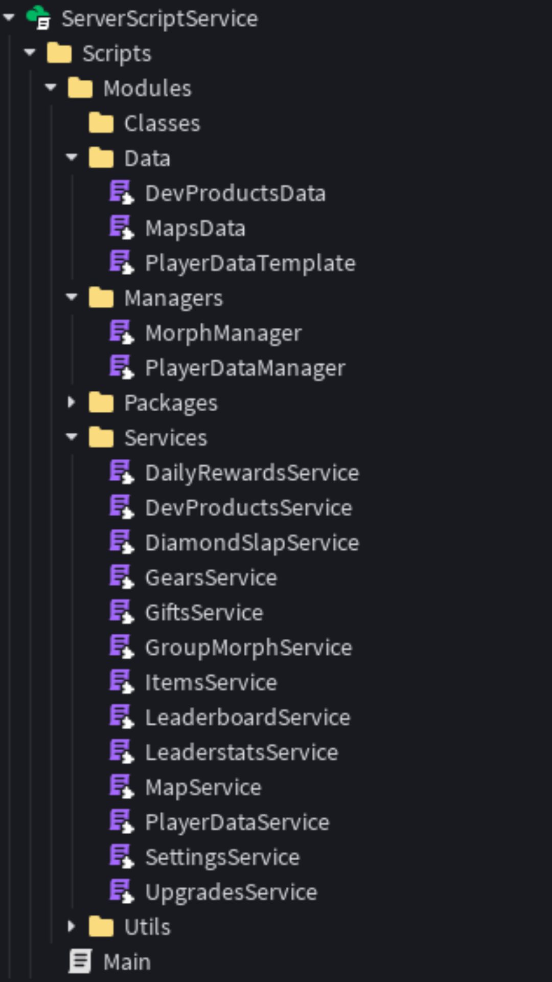 I used several open-source modules to build these systems, including Trove, Signal, Fusion, Spring, ProfileService, and others. The entire game is fully modularized and organized using a single-script architecture.